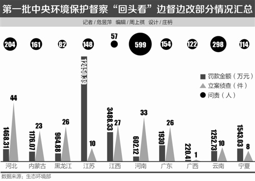 首批中央環(huán)保督察“回頭看”:問責(zé)近兩千人 十省區(qū)共罰款2.5億