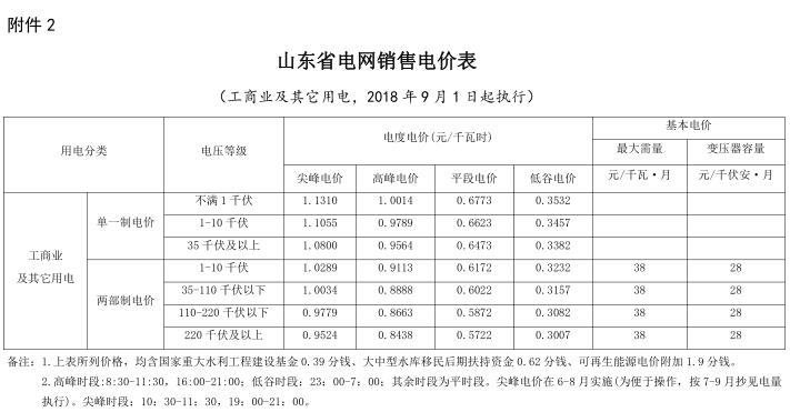 2.山東省電網(wǎng)銷售電價表、山東省電網(wǎng)輸配電價表(2018年9月1日起執(zhí)行)