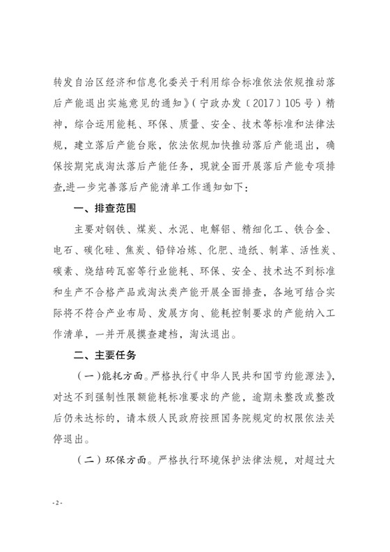 寧夏關(guān)于在全區(qū)開展落后產(chǎn)能專項(xiàng)排查建立落后產(chǎn)能退出清單的通知