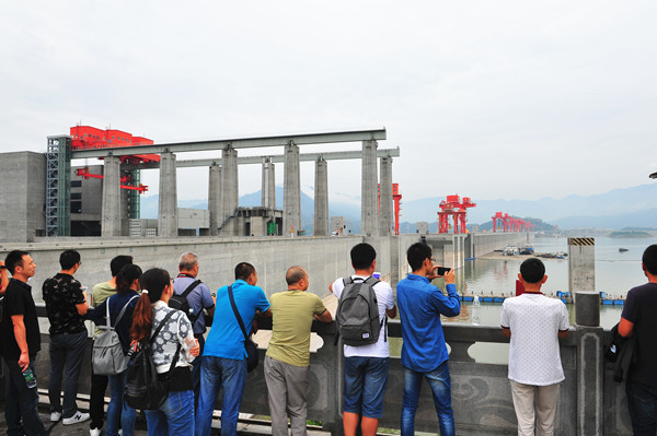 參觀長江三峽水利樞紐工程模型。 李婭琴 攝