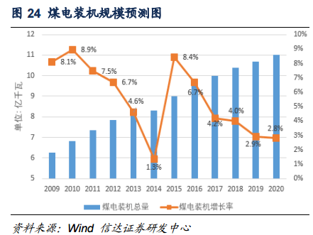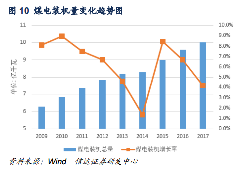 我們預(yù)計(jì),2018年煤電裝機(jī)總量約為10.4億千瓦,裝機(jī)增速大概率不會超過4%,未來煤電裝機(jī)總量將繼續(xù)增加,但裝機(jī)增速將明顯放緩。