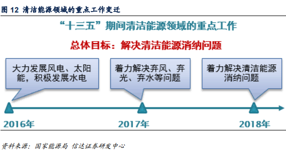 2018年能源工作會議提出,要聚焦綠色發(fā)展,著力解決清潔能源消納問題,著力推進(jìn)能源結(jié)構(gòu)調(diào)整戰(zhàn)略工程,統(tǒng)籌推進(jìn)煤炭清潔高效利用,大力推進(jìn)能源清潔發(fā)展水平。清潔能源發(fā)展已經(jīng)從過去的大規(guī)模加速發(fā)展轉(zhuǎn)變?yōu)榻鉀Q消納了。