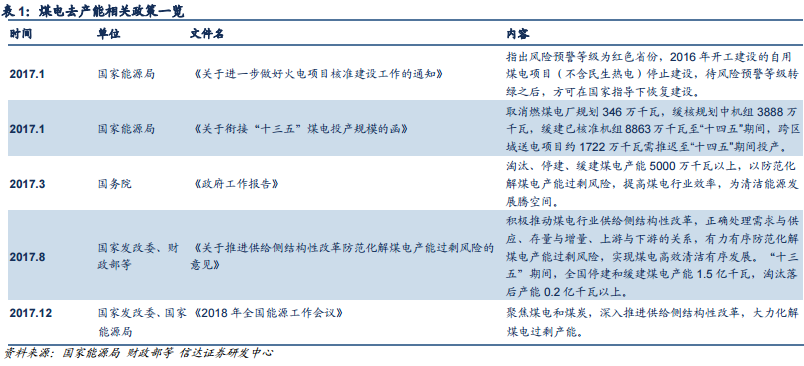 2018年能源工作會議提出,2018年要聚焦煤電,深入推進(jìn)供給側(cè)結(jié)構(gòu)性改革,大力化解煤電過剩產(chǎn)能。對比國家能源局2017年能源工作指導(dǎo)意見提出的有效防范和化解煤電產(chǎn)能過剩風(fēng)險(xiǎn),可以看出,國家對于煤電產(chǎn)能過剩已經(jīng)定性。政府接連多次發(fā)文強(qiáng)調(diào)煤電去產(chǎn)能,再加上此次能源工作會議明確了煤電產(chǎn)能過剩的事實(shí),可以推測,煤電去產(chǎn)能將在“十三五”期間延續(xù)高壓態(tài)勢,煤電“去產(chǎn)能”政策導(dǎo)向明顯,30萬千瓦以下落后煤電機(jī)組將陸續(xù)被淘汰。