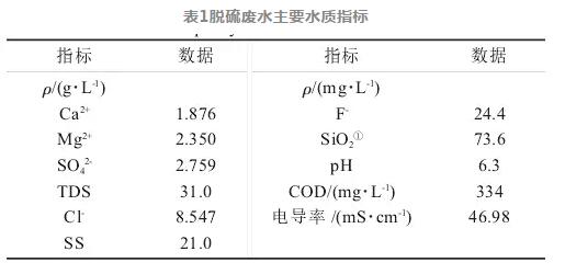 實驗用水為預沉后的脫硫廢水上清液,水質(zhì)分析結(jié)果如表1所示,該脫硫廢水水質(zhì)呈弱酸性,Ca2+、Mg2+、SO42-及鹽含量均較高。