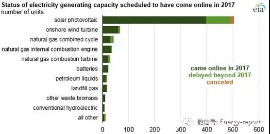 根據(jù)美國能源信息署數(shù)據(jù),2018年美國將增加25.1GW電力裝機(jī)容量。這些增量中的19.7GW(78%)已按照計劃于去年并網(wǎng)。大約5.3GW的規(guī)劃裝機(jī)容量推遲到今年或之后幾年建設(shè)。少量項目被取消。