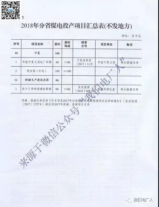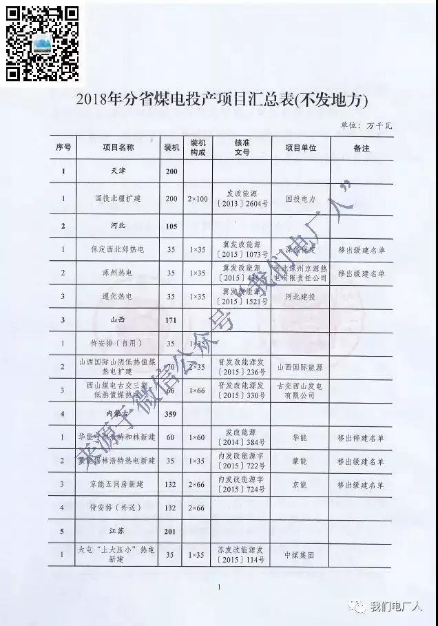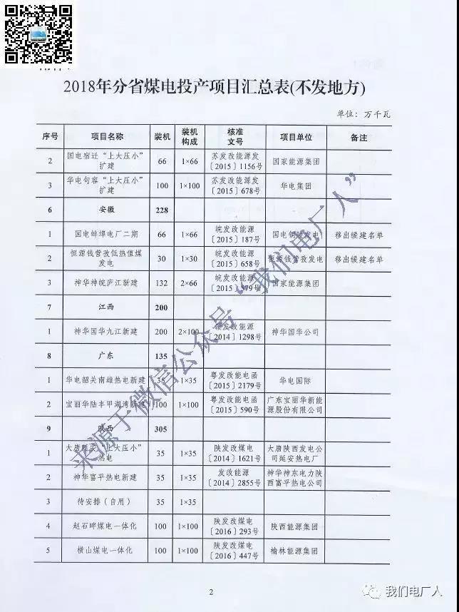 2018年分省煤電投產(chǎn)項目匯總表(不發(fā)地方)名單如下: