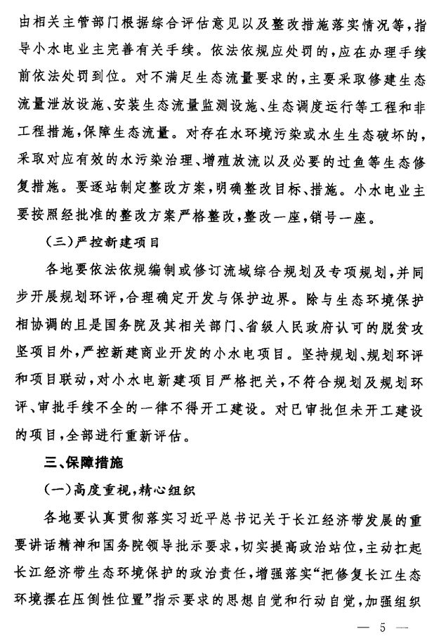 四部委:關(guān)于開展長江經(jīng)濟帶小水電清理整改工作的意見