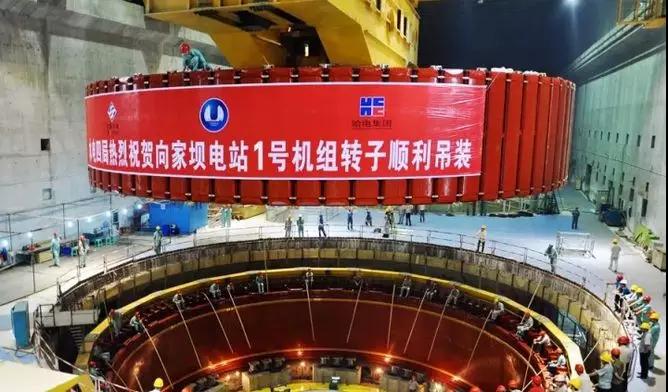 2013年6月22日,向家壩水電站左岸首臺(tái)機(jī)組轉(zhuǎn)子吊裝