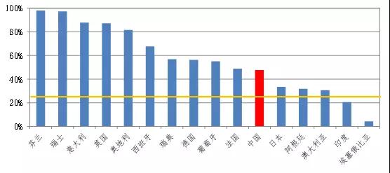 圖1典型國家水能開發(fā)度(發(fā)電量/經(jīng)濟(jì)可開發(fā)量)