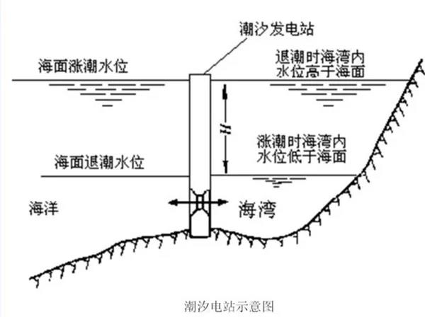 潮汐現(xiàn)象是海水因受日月引力而產(chǎn)生的周期性升降運動,即海水的潮漲潮落。潮汐發(fā)電就是在海灣或有潮汐的河口建一攔水堤壩,將海灣或河口與海洋隔開構(gòu)成水庫,再在壩內(nèi)或壩房安裝水輪發(fā)電機組,然后利用潮汐漲落時海水位的升降,使海水通過輪機轉(zhuǎn)動水輪發(fā)電機組發(fā)電。