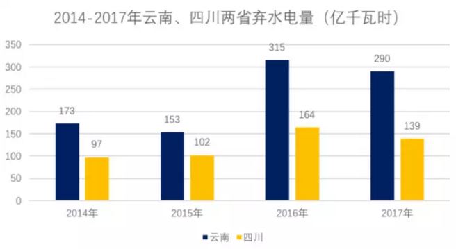 2017年,全國(guó)棄水電量515億千瓦時(shí),西南棄水率呈現(xiàn)下降趨勢(shì),尤其是在《關(guān)于促進(jìn)西南地區(qū)水電消納的通知》和《解決棄水棄風(fēng)棄光問(wèn)題實(shí)施方案》印發(fā)后,棄水狀況得到明顯改善,四川、云南兩省棄水電量分別同比下降7.9%、15.2%,但仍占到全國(guó)棄水電量的83.3%,水電消納問(wèn)題未根本解決。