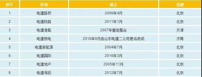 另有電建租賃、電建裝備研究院、北京華科軟、電建水治理、電建(德國)等85家二級子公司、控股公司。