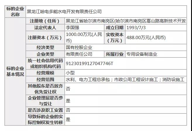 掛牌 | 黑龍江哈電多能水電開發(fā)有限公司79.9%股權(quán)