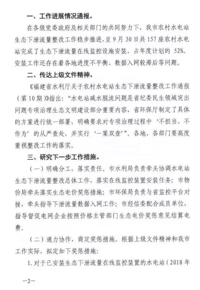 福建某市水利局協(xié)同各部門認(rèn)真落實《福建省貫徹落實中央環(huán)保督查反饋意見整改方案》,制定整體農(nóng)村水電站下泄流量整改實施方案,成立領(lǐng)導(dǎo)小