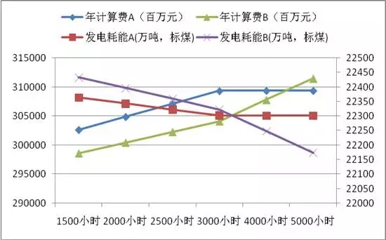 通過分析兩種方式全網(wǎng)的電站投資、能源消耗、年計算費用等多項經(jīng)濟(jì)評價指標(biāo),比較方案的經(jīng)濟(jì)性。其中,年計算費用主要由投資等年值和運行費用(包括固定、可變運行費用)組成。