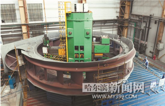 圖為白鶴灘項(xiàng)目首臺座環(huán)車序加工現(xiàn)場。