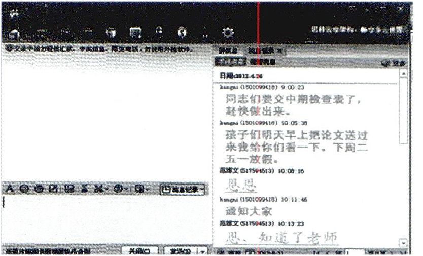 2012年3月19日《教育部關于全面提高高等教育質量的若干意見》中針對人才培養(yǎng)模式單一、大學生實踐能力和創(chuàng)新能力不強等問題,提出探索科學基礎、實踐能力和人文素養(yǎng)融合發(fā)展的新模式。創(chuàng)新教育教學方法,倡導啟發(fā)式、探究式、討論式、參與式教學;促進科研與教學互動,及時把科研成果轉化為教學內容,重點實驗室、研究基地向學生開放。[1] QQ從簡單的即時通信功能軟件,逐漸發(fā)展、強大,成為以通信為核心,支持在線聊天、視頻電話、點對點斷點續(xù)傳文件、共享文件、網絡硬盤、自定義面板、QQ郵箱等多種功能于一體的學習軟件。QQ基本上已經占領了中國在線即時通訊的市場,基于QQ平臺的教學適應現(xiàn)代教育的需求,QQ的教學應用已經引起了人們的重視。QQ擁有最廣泛的使用人群,因其功能多,使用簡單,可以多人協(xié)作,也可以兩兩討論,可以實時進行,也可以異步進行,可視頻,也可音頻,挖掘其教育應用很有研究價值。可以進行基于QQ平臺的混合式學習設計與實踐研究[2]、基于QQ與Blog相結合的教學平臺的設計與應用等教學研究,[3]且成本低,人群廣,易操作,可推廣。