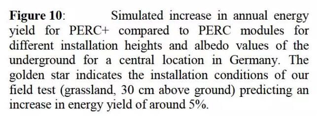 天合光能的雙面組件在17年2~4月在草地、沙地和白板的地面反射條件下相對常規(guī)組件可分別多發(fā)電5.2%、10.79%、21.9%;配合跟蹤支架則多發(fā)電結(jié)果變?yōu)?0.57%、24.42%、33.2%。發(fā)現(xiàn)雙面PERC組件配合跟蹤支架可實(shí)現(xiàn)1+12的效果。