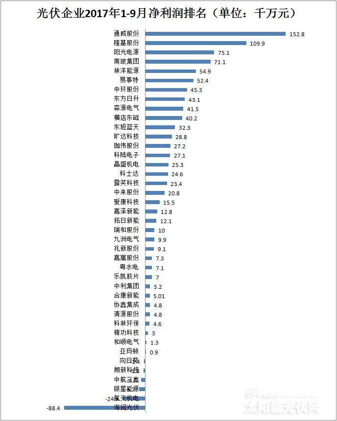最新:41家光伏上市公司2017年前三季度營收/凈利潤/總資產(chǎn)排行榜