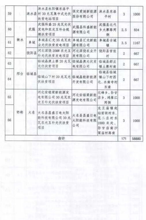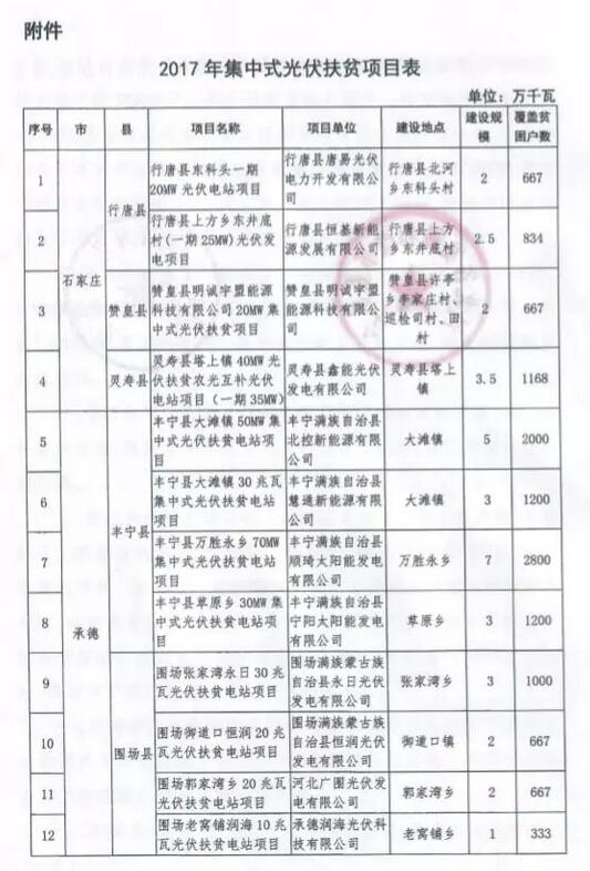 66個(gè)項(xiàng)目共計(jì)1.71GW!河北省公布2017年集中式光伏扶貧項(xiàng)目名單