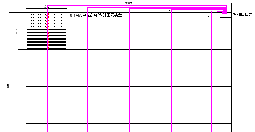 共需0.1MW單元逆變器-升壓箱變200臺(tái)。共需5路光伏匯集柜,每回路共有單元40臺(tái)。