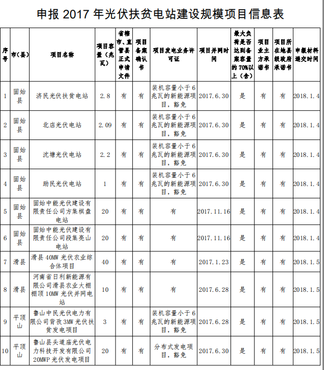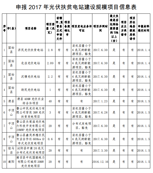 河南關(guān)于申報(bào)2017年光伏扶貧電站建設(shè)規(guī)模項(xiàng)目的公示