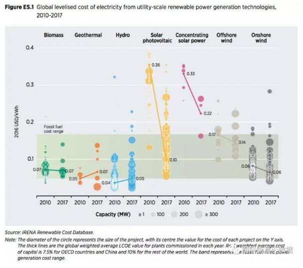 2017年全球各類可再生能源發(fā)電最新成本數(shù)據(jù)全披露:光伏地面電站0.10美元/千瓦時(shí)