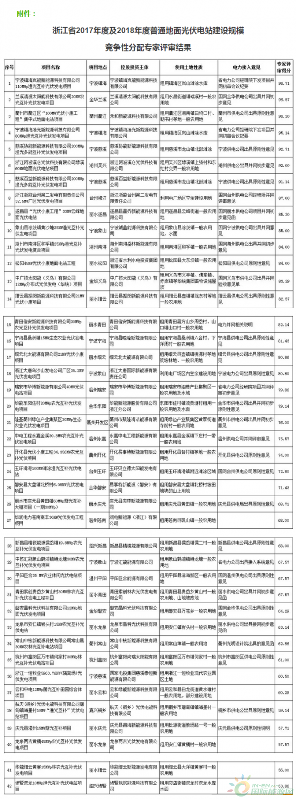 附件:浙江省2017年度及2018年度普通地面光伏電站建設(shè)規(guī)模競爭性分配專家評審結(jié)果