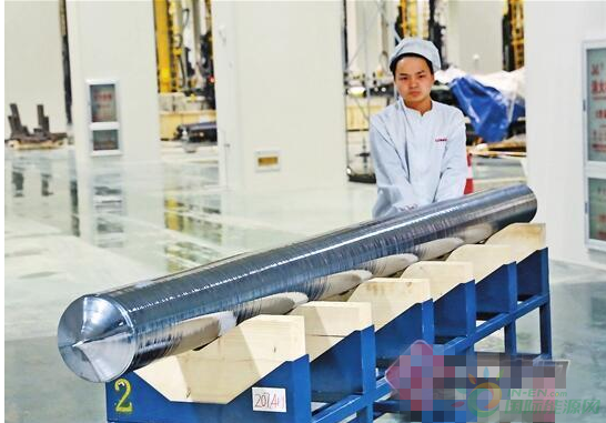 這根單晶硅棒呈圓柱體形狀,長度超過3.2米。麗江隆基硅材料有限公司相關(guān)負(fù)責(zé)人介紹,單晶硅棒的生產(chǎn),要經(jīng)過70個小時連續(xù)不間斷的高溫拉制。