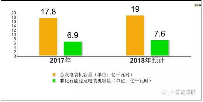 △2017年全國發(fā)電裝機(jī)容量、非化石能源發(fā)電裝機(jī)容量和2018年預(yù)測