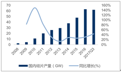 中國(guó)歷年硅片產(chǎn)量(單位:GW)