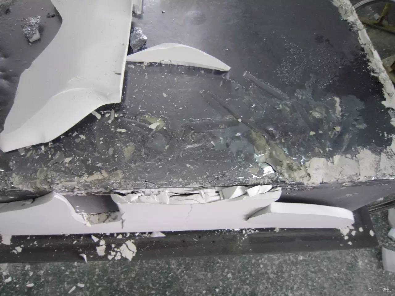 1)坩堝隱裂。用來盛放硅錠的坩堝為石英陶瓷材料,其制作方式有注漿成型和注凝成型兩種方式,但不論哪種方式制作的坩堝,都會(huì)存在隱裂,氣孔等缺陷,這些坩堝在出廠以前一般都會(huì)經(jīng)歷兩道以上的采用顯影液透光檢查過程,但仍可能會(huì)有漏檢的坩堝,另外坩堝在運(yùn)輸過程中或搬運(yùn)過程中會(huì)遇到震動(dòng)或磕碰,都會(huì)導(dǎo)致坩堝產(chǎn)生隱裂,如果這些缺陷在裝料前沒有檢測到,很有可能在熔化過程中出現(xiàn)硅液溢流現(xiàn)象。因此,坩堝拆箱以后,在噴涂前應(yīng)該嚴(yán)格檢測,使用強(qiáng)光燈源對坩堝五個(gè)面透光檢測是一種較為方便有效的方法。