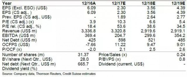 CS預(yù)期2017年,2018年,2019年的收入相比2016年都沒有增長,并且2018年相比2017年還會(huì)下降13%。