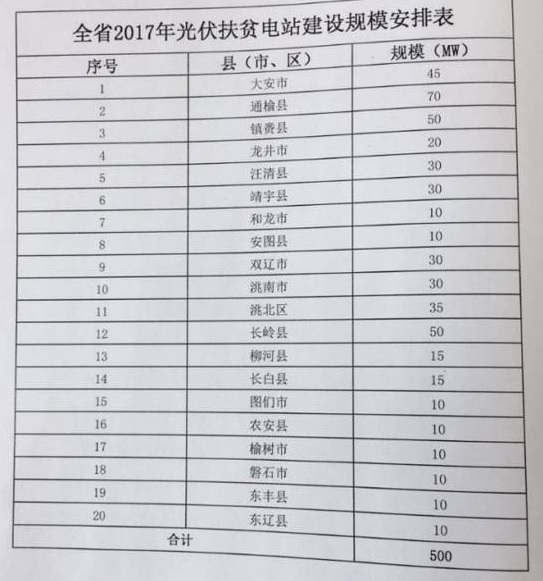 吉林省2017年新增500MW光伏指標(biāo)全部用于集中扶貧