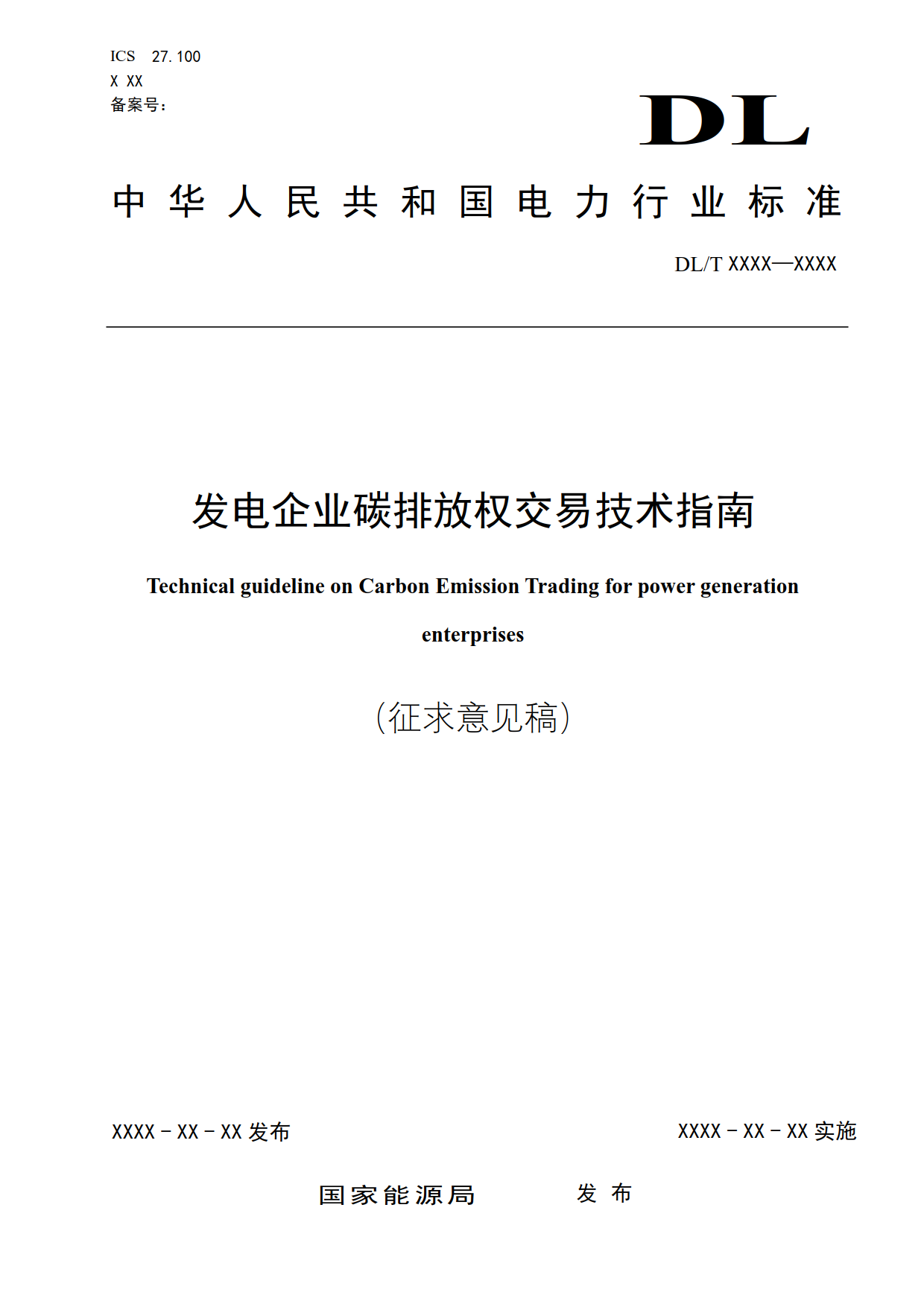 中電聯(lián)印發(fā)《發(fā)電企業(yè)碳排放權(quán)交易技術(shù)指南(征求意見稿)》