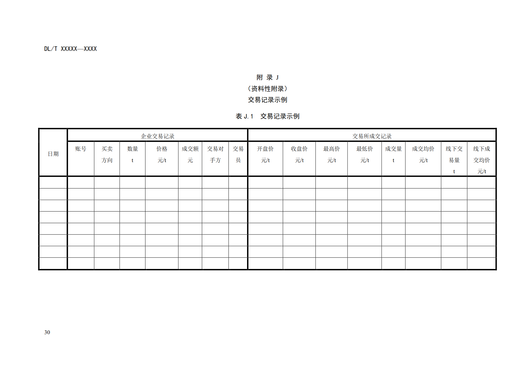 6.5.2.4.4 發(fā)電企業(yè)可實(shí)行交易日報(bào)、周報(bào)、月報(bào)制度,按規(guī)定記錄交易情況并存檔,交易記錄示例參見附錄J。