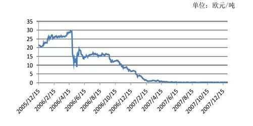 首先,歐盟委員會(huì)于2006年5月確認(rèn)2005年實(shí)際碳排放量比分配的碳配額低4%,由此導(dǎo)致EUA價(jià)格暴跌到10歐元。