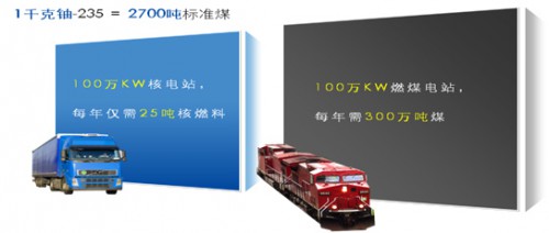 例如,核電站所用的核燃料中有效成分是鈾235,如果能讓1千克鈾235的原子核全部分裂成碎片(裂變),則它可以釋放出相當(dāng)于2700噸標(biāo)準(zhǔn)煤完全燃燒所放出的能量。