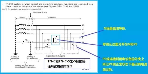 注意哦,圖2對應(yīng)的接地系統(tǒng)叫做TN-C,而圖3對應(yīng)的接地系統(tǒng)叫做TN-C-S。