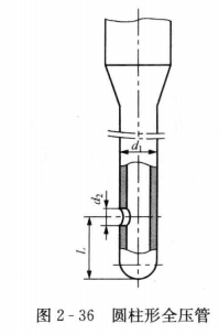 圓柱形全壓管見(jiàn)圖2-36,當(dāng)l/di≥1.5時(shí),其修正系數(shù)為1.0,對(duì)水平方向流動(dòng)偏斜角的不靈敏性,也是隨d2/di的增大而增大。當(dāng)d2/d1=0.4~0.7時(shí),這個(gè)方向的不靈敏度為±(10度~15度),對(duì)垂直方向擴(kuò)展角的不靈敏度是±(2度~6度)。