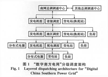 “數(shù)字南方電網(wǎng)”的分級(jí)調(diào)度架構(gòu)按南方電網(wǎng)調(diào)度自然劃分為總網(wǎng)調(diào)-省調(diào)-地調(diào)-區(qū)縣調(diào)4層,如圖1所示。
