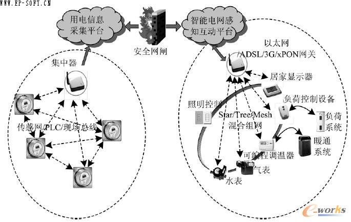 互動(dòng)性作為智能電網(wǎng)的另一個(gè)重要特征,在智能用電環(huán)節(jié)上體現(xiàn)得尤為明顯。而感知作為物聯(lián)網(wǎng)的基本特性,除利用多種手段實(shí)現(xiàn)泛在的物體感知外,還必須充分利用互聯(lián)網(wǎng)和移動(dòng)通信的資源實(shí)現(xiàn)人與物、物與物之間無所不在的連接與互動(dòng)。作為智能電網(wǎng)互動(dòng)性的集中體現(xiàn),智能用電肩負(fù)著與用戶建立密切、負(fù)責(zé)的交互關(guān)系,實(shí)現(xiàn)供需互動(dòng)的重任。因此,相對于輸電線路、無人值守變電站和配電網(wǎng)自動(dòng)化系統(tǒng),面向智能用電的ICT 平臺要求區(qū)域更廣、業(yè)務(wù)更多的感知與互動(dòng)。這種感知與互動(dòng)的開放性和智能電網(wǎng)安全通信的要求是矛盾的,也只有解決了這一矛盾,才能真正找到面向智能電網(wǎng)的物聯(lián)網(wǎng)應(yīng)用模式。