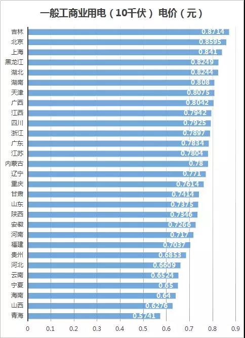 吉林省2018年工商業(yè)電價(jià)最高的省 2019年降價(jià)8.85分