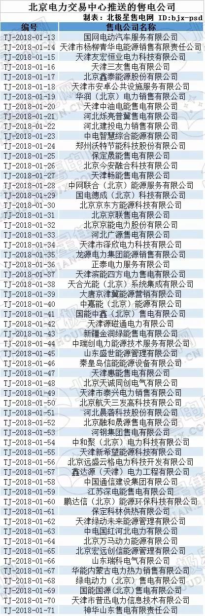 天津電力交易中心今日發(fā)布了首批公示的71家售電公司名單,其中包含本土的12家售電公司,另外有59家為北京電力交易中心推送的跨省售電公司。公示期為2018年11月2日至2018年12月1日,時間1個月。
