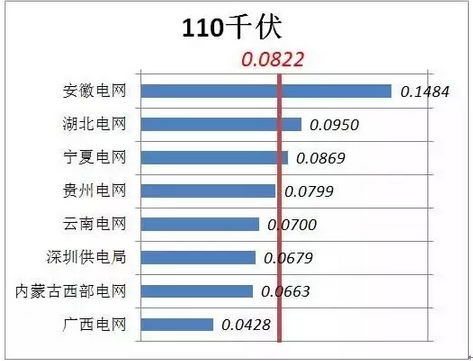 (4)110千伏:8省市平均為0.0822元/千瓦時(shí),其中,安徽最高為0.1484元/千瓦時(shí),廣西最低為0.0428元/千瓦時(shí)。詳情如下:
