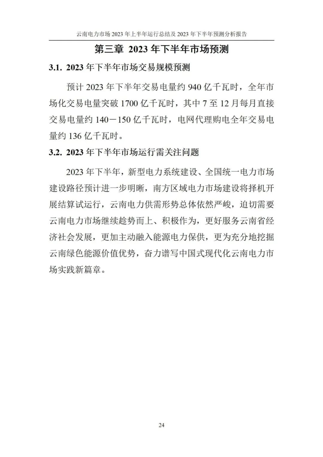 日前昆明電力交易中心發(fā)布云南電力市場(chǎng)2023年上半年運(yùn)行總結(jié)及2023年下半年預(yù)測(cè)分析報(bào)告。報(bào)告顯示: