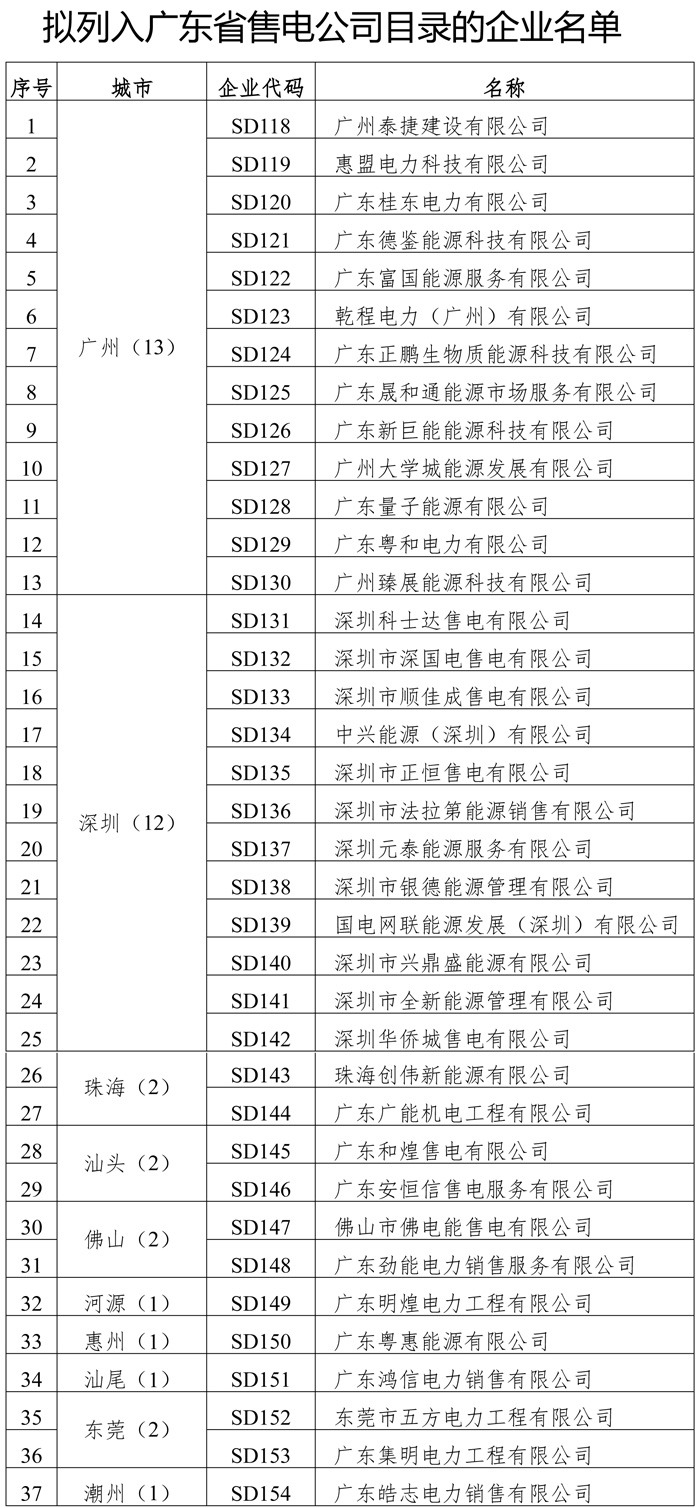 廣東省擬列入第四批售電公司目錄企業(yè)名單公示