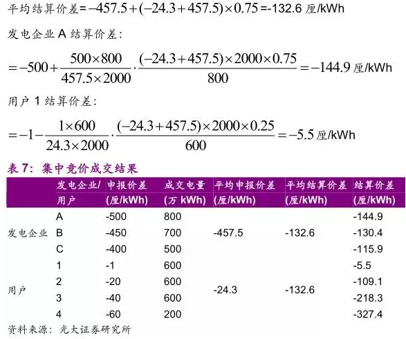 成交的發(fā)電企業(yè)平均申報(bào)價(jià)差為-457.5厘/kWh,成交的用戶平均申報(bào)價(jià)差為-24.3厘/kWh,雙方申報(bào)的價(jià)差電費(fèi)總量存在差額,這部分差額按照交易中心事先規(guī)定的比例分別返還給發(fā)電企業(yè)和用戶。發(fā)電企業(yè)獲得的總返還差額在各個(gè)發(fā)電企業(yè)間按其申報(bào)價(jià)差電費(fèi)占發(fā)電企業(yè)總申報(bào)價(jià)差電費(fèi)的比例分配,用戶獲得的總返還差額在各個(gè)用戶間按其申報(bào)價(jià)差電費(fèi)占用戶總申報(bào)價(jià)差電費(fèi)的比例分配。若按照廣東省今年前三批集中競價(jià)交易的規(guī)則,差額按照75%和25%的比例分別返還給發(fā)電企業(yè)和電力用戶。