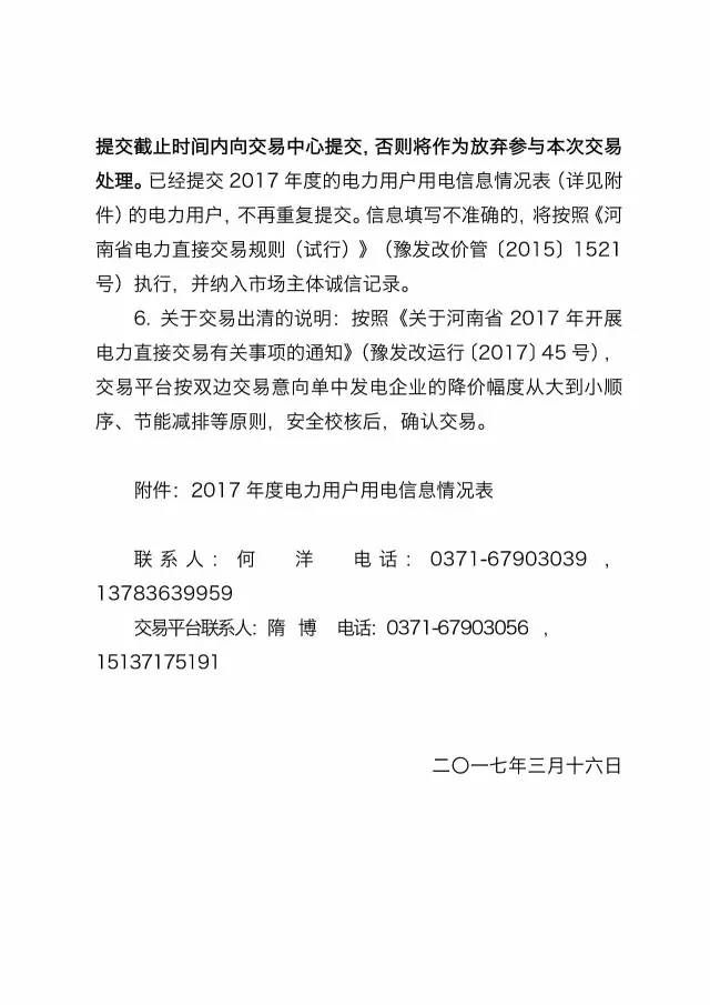 河南省2017年度第二次雙邊協(xié)商交易合同提交截止時(shí)間是3月23日(周四)15:00,這將會(huì)是河南2017年度最后一次雙邊協(xié)商交易,此次交易電量規(guī)模為2017年4月至12月剩余用電量空間。(本文轉(zhuǎn)載自:晶見微信公眾號(hào) 微信