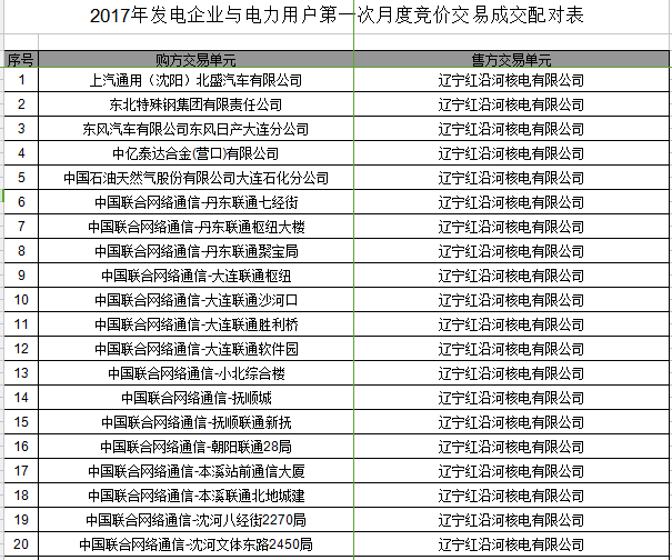 2017年第一次電力用戶與發(fā)電企業(yè)月度競(jìng)價(jià)交易結(jié)果公告
